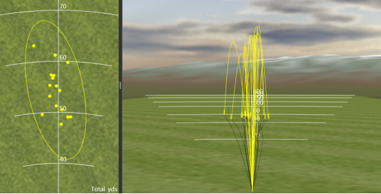 b)球的飞行弹道:落点距离、滚动距离、落点偏移、飞行高度、落地角度、飞行时间。