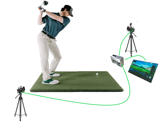 KMR-A在KMR的基础上,增加了两路高清高速相机(1080p@120fps),用于从两个角度捕获挥杆影像并进行AI分析(具体功能见:凯视力成高尔夫教学训练APP)。