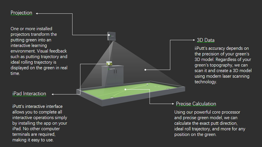 Transform the putting green into an interactive learning environment by installing one or more projectors. Visually demonstrate what you should be doing by projecting putt trajectory, ideal rolls, and more directly onto the green.